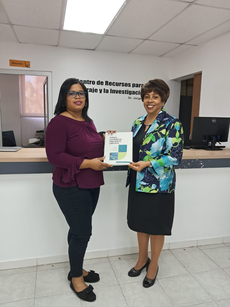 Vicerrectora Académica deposita el libro Cómo cuidar al paciente crítico en el CRAI-Biblioteca de la Universidad Eugenio María de Hostos